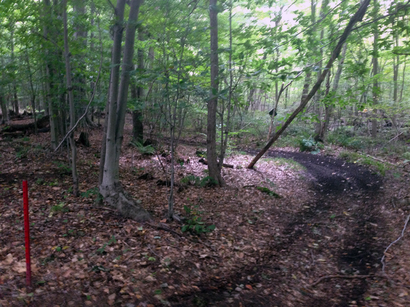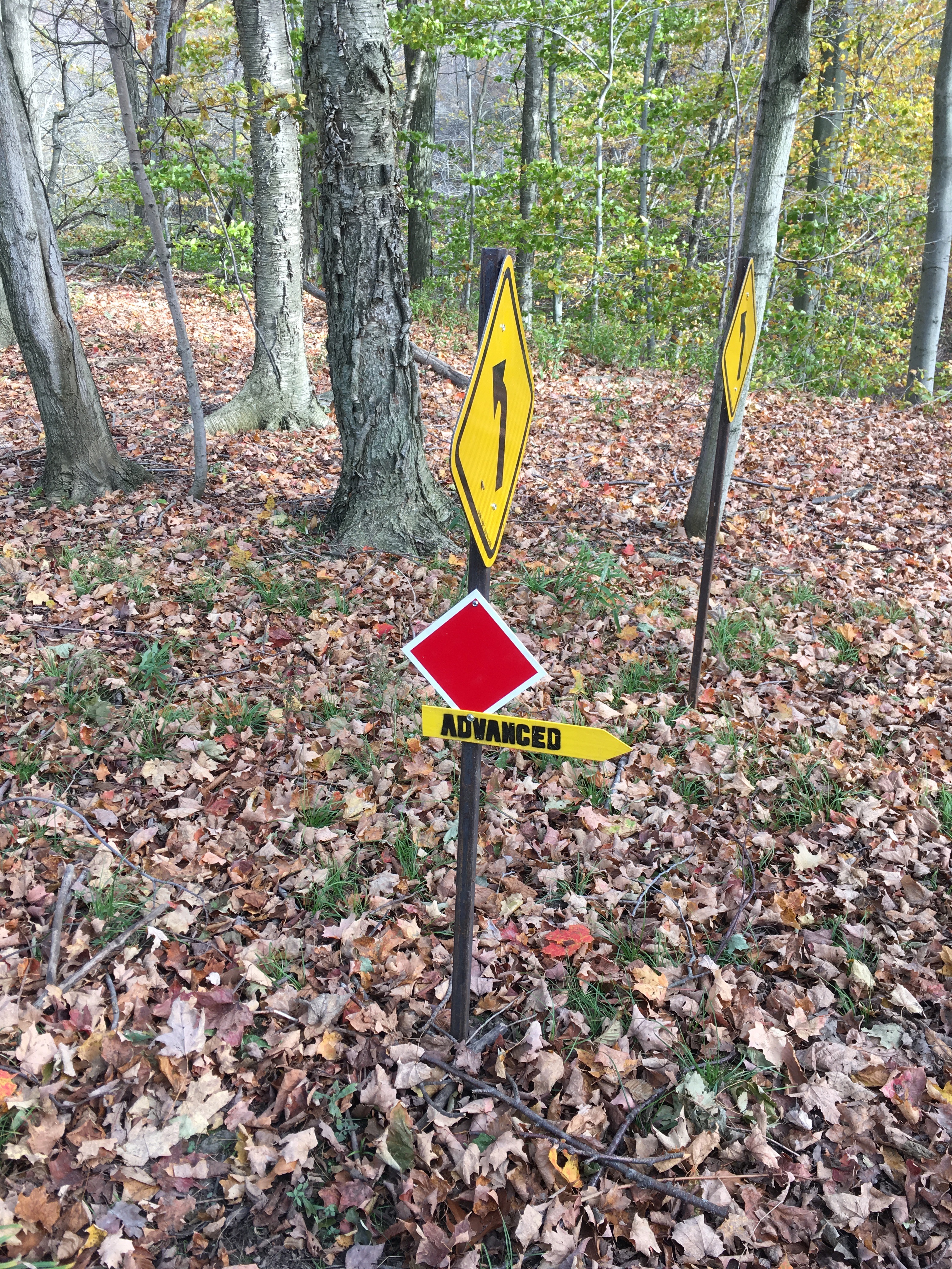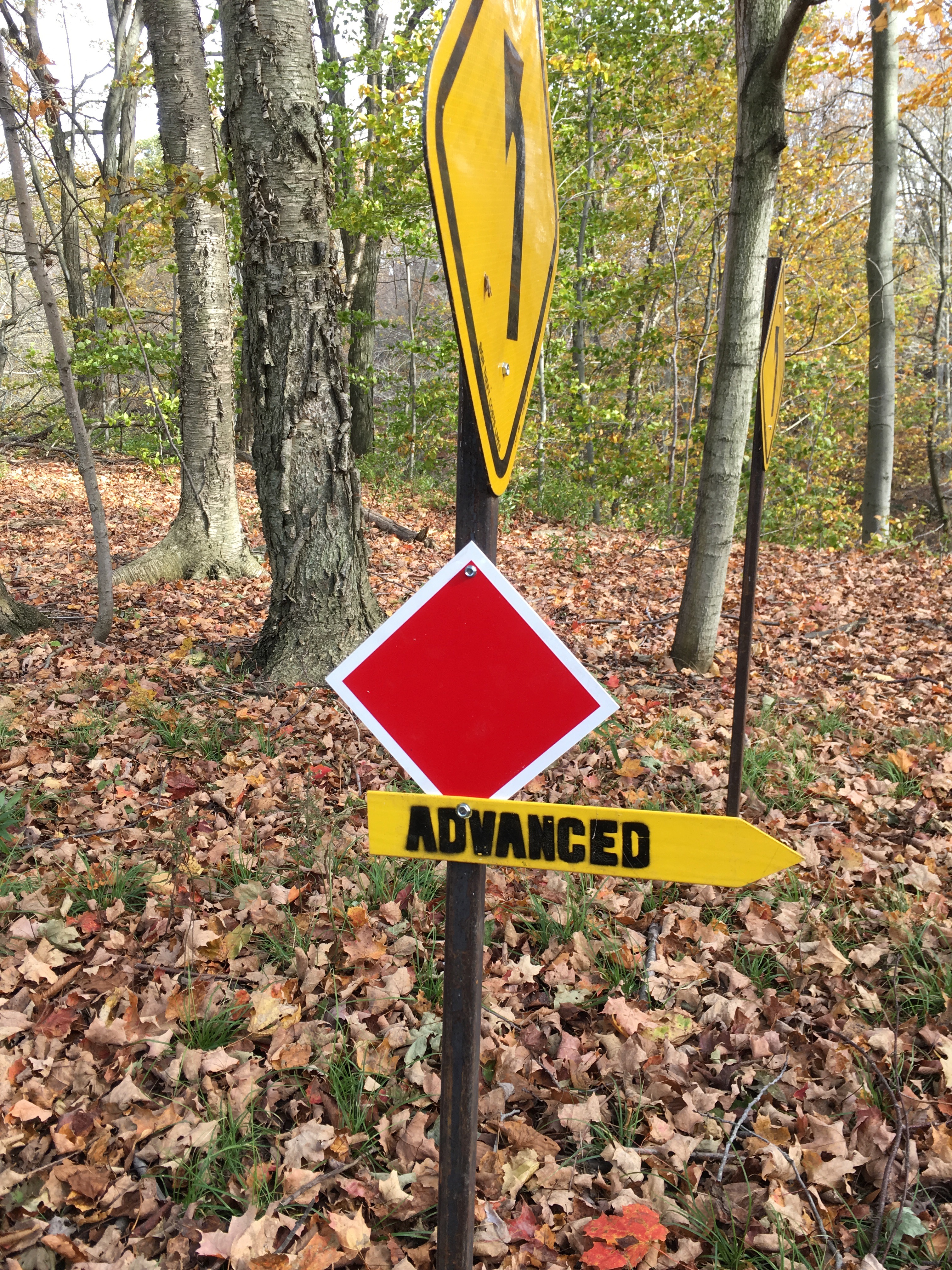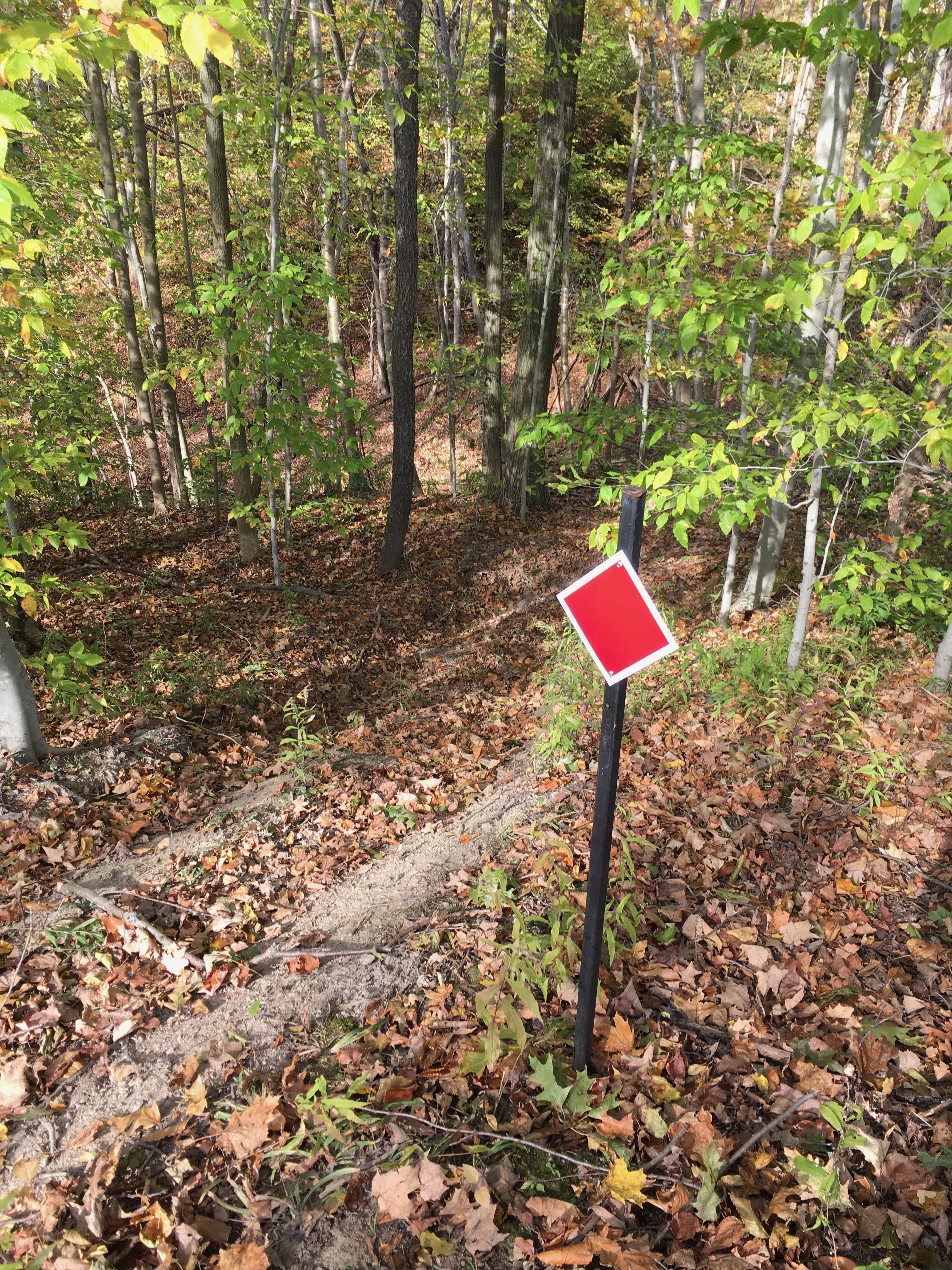 Red diamonds indicate an advanced trail - side-hill slopes or steep hills that may require more advanced riding skills.